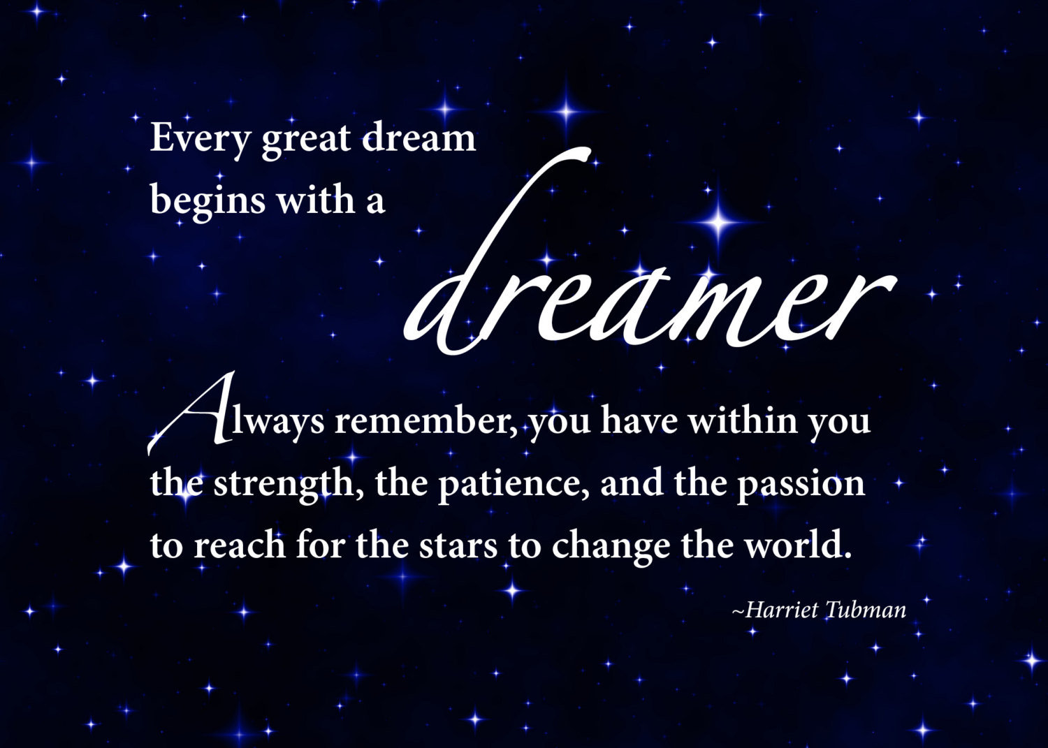 ” Every great dream begins with a dreamer. Always remember, you have within you the strength, the patience, and the passion to reach for the stars to change the world.” — Harriet Tubman —