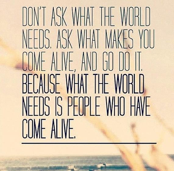 “Ask not what the world needs. Ask what makes you come alive, and go do it. Because what the world needs is people who have come alive.” — Howard Thurman —