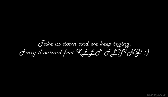 “Take us down and we keep trying, 40,000 feet keep flying.” — One Republic —