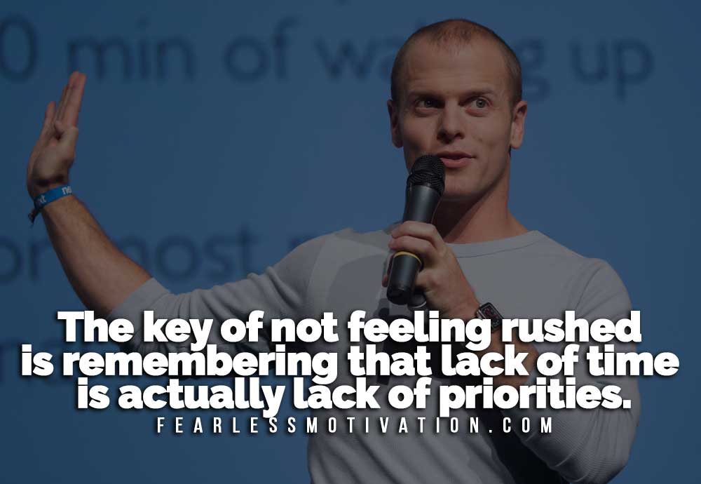 ” The key of not feeling rushed is remembering that lack of time is actually lack of priorities. “ — Tim Ferriss —